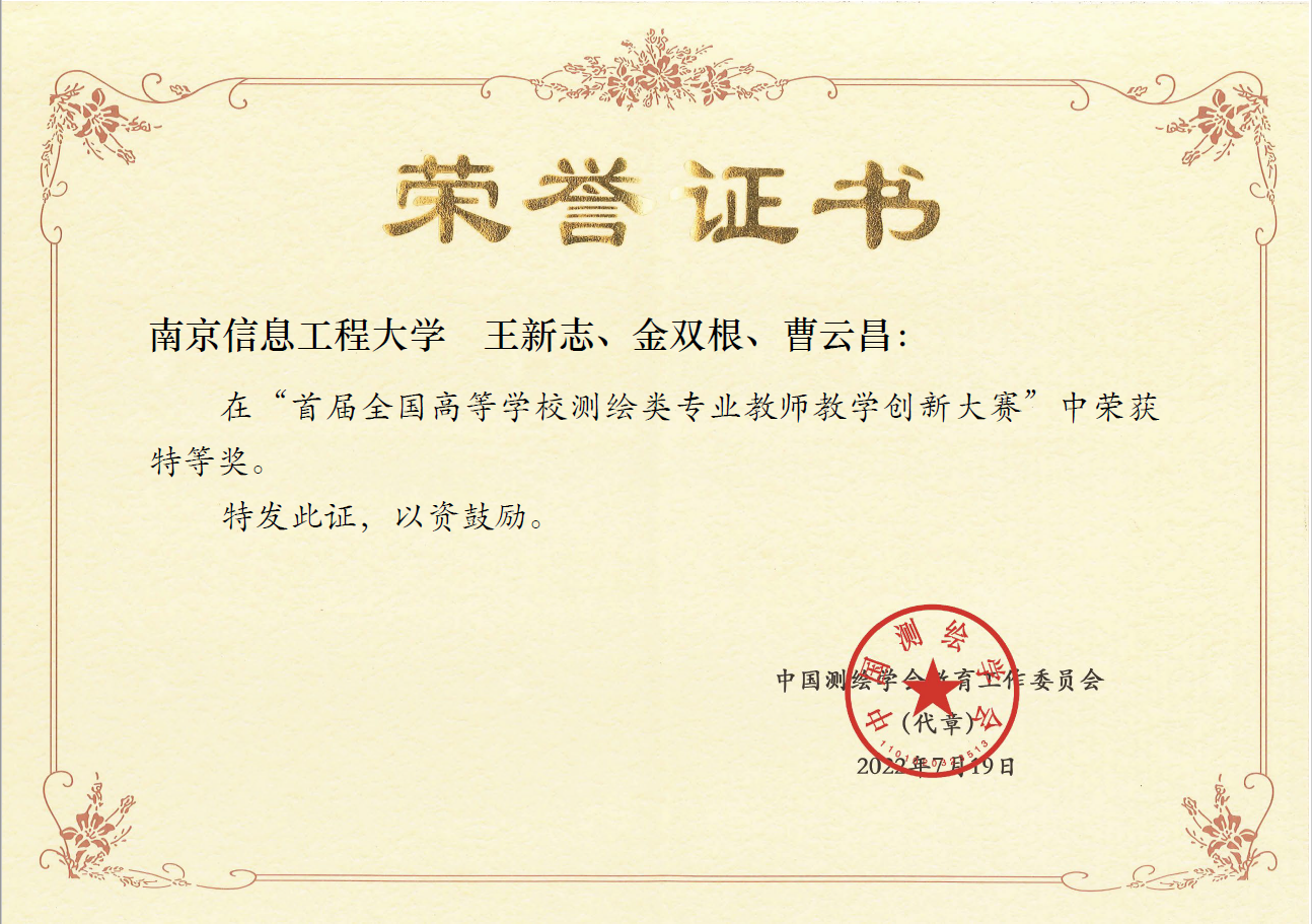 专业教师积极参加各类教学竞赛,近3年获得江苏省高校教师教学创新大赛二等奖1项,全国高等学校测绘类专业教师教学创新大赛特等奖与一等奖各1项,青年教师讲课竞赛一等奖2项,二等奖4项。