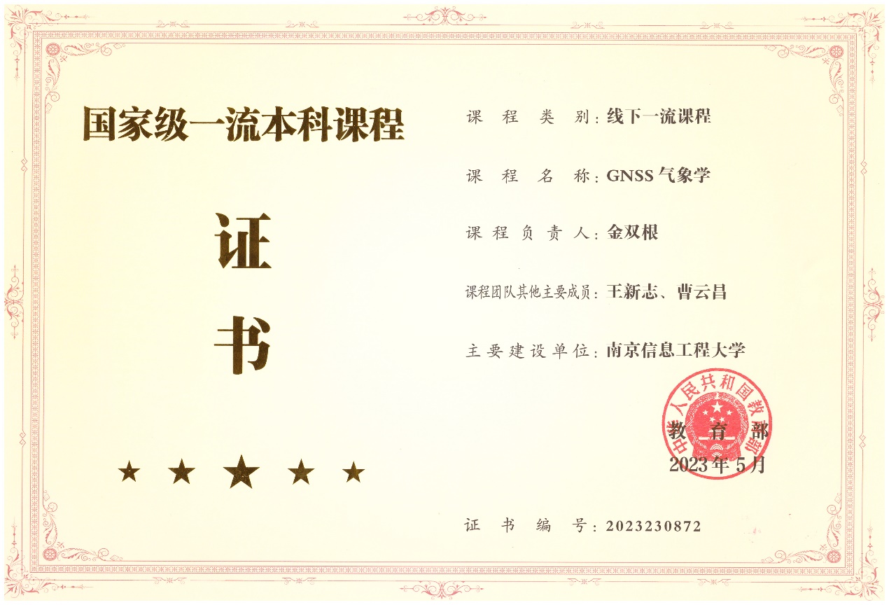 《GNSS气象学》获批为国家一流课程