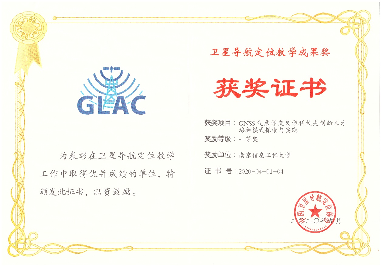 中国卫星导航定位协会教学成果奖一等奖