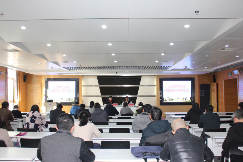 根据校党委巡察工作安排,2021年1月12日,校党委第三巡察组向直属单位党委反馈巡察情况。校党委第三巡察组组长王苏春、副组长庞章军及第三巡察组成员出席会议,根据新冠肺炎疫情防控要求,直属单位党委所属单位领导班子成员及全体科级及以上干部参加会议。反馈会在图书馆724报告厅举行,直属单位党委书记许尝君主持会议。