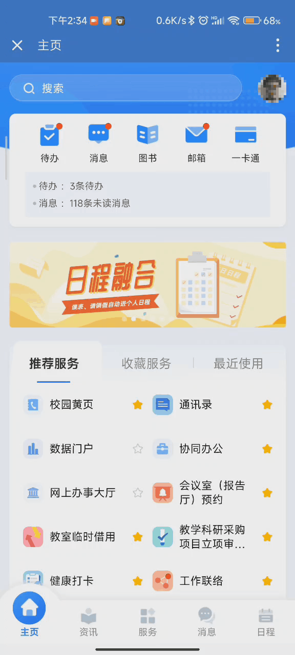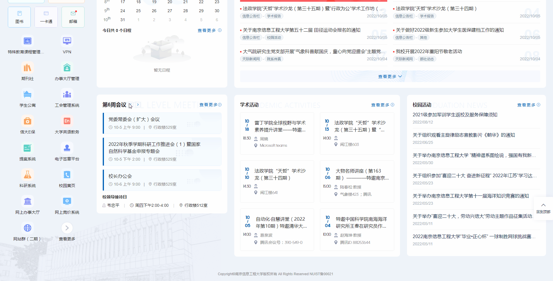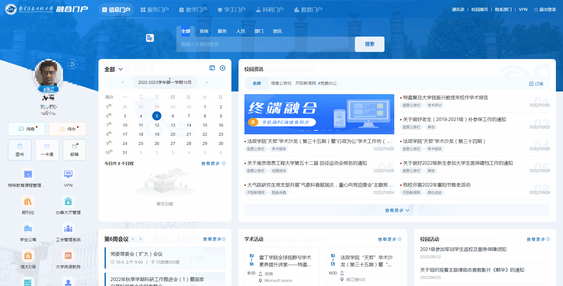 1、校级会议不仅可以在信息公告中找到,还可以在门户中查看,界面更加美观。