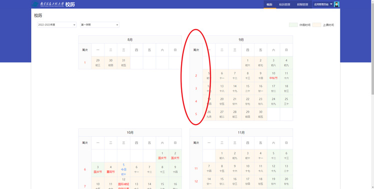 1、用户可以通过右上角直达校历,也可以通过搜索找到。