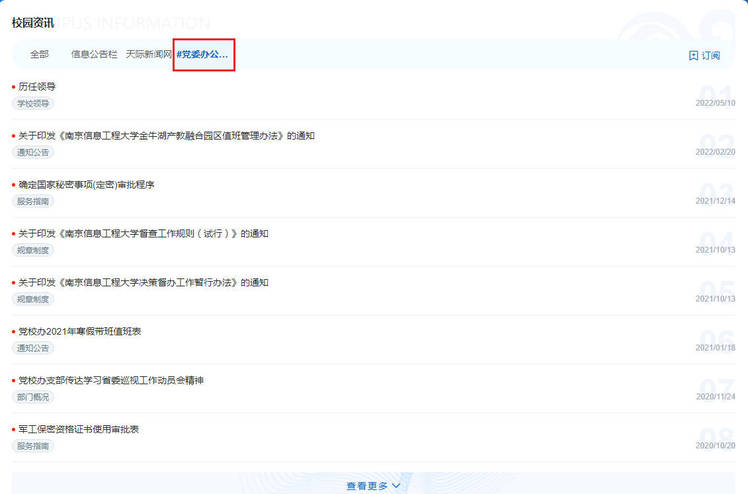 2、门户默认订阅“信息公告栏”和“天际新闻网”两个站点,用户自行点阅的站点和栏目将以“#”标记