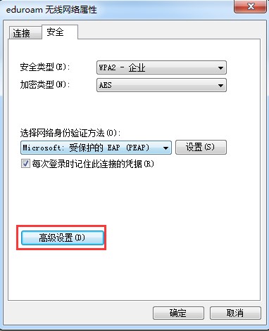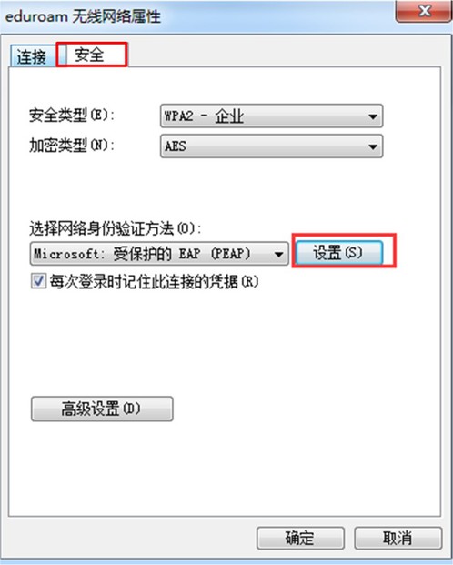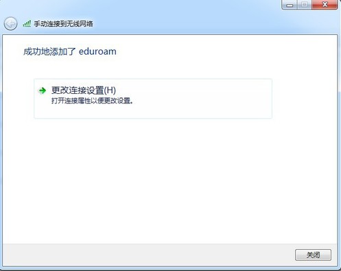 点击【更改连接设置】,进入到【eduroam无线网络属性】对话框;