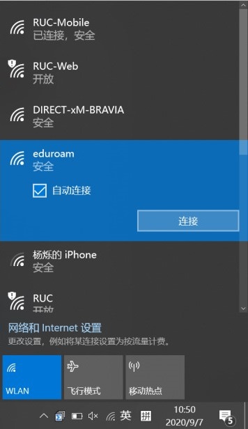 注意2eduroam信号可以在学校搜索到,但南信大的用户在校内无法通过校内账号登陆认证成功,只有在其他支持eduroam的国内外大学和科研机构才可免费使用。