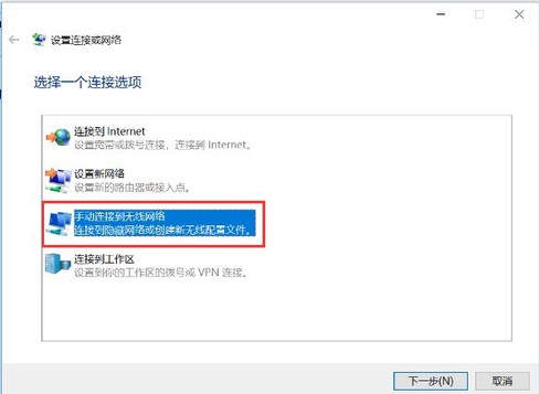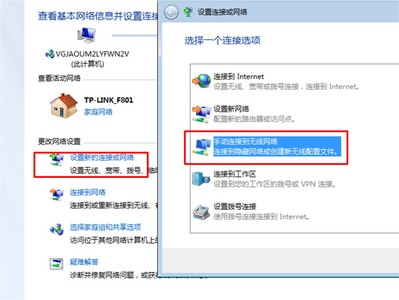 打开【网络与共享中心】,选择【设置新的连接或网络】,点击【手动连接到无线网络】;