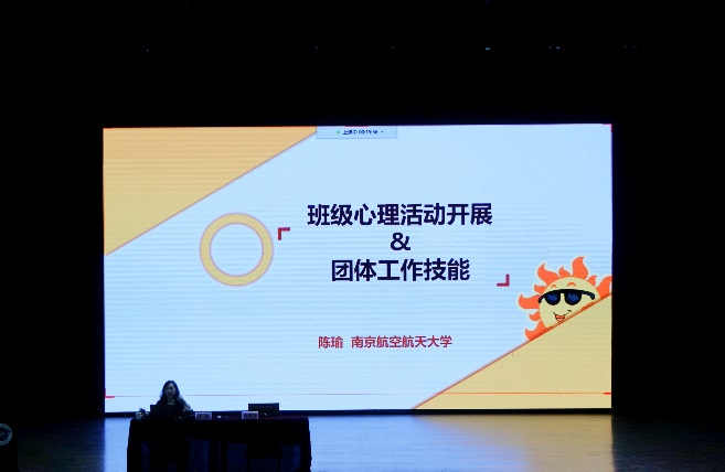 南京航空航天大学心理中心陈瑜老师以“班级心理班会主持实务操作”带来第二场精彩讲座。陈老师以抓手指游戏开场,使用闹钟、灯泡、桥梁、调色板四个比喻传达了班级心理委员自助和助人的工作宗旨。陈老师指出,举办班级心理班会活动不仅能增进班级同学的融入感,更能帮助同学们放松心情,活跃班级气氛,体验式的讲座也增强了同学有效开展班级活动的信心。