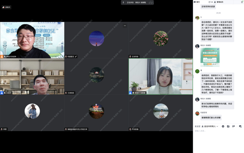 随后,任老师对家长陆续提出的有关学生的学业、恋爱困扰、游戏成瘾问题、自我认同困难和心理疾病问题等给予了充分的解答,并借由提问发散出关于亲子关系、沟通技巧、家校协同等方面内容的专业论述,既充分回应了家长的疑问,也延伸出更深层次的思考,让参与的家长们关注到了在学生表面问题背后,还有很多需要进一步了解和提升的内容。