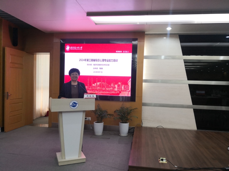 5月17日上午,学工处在图书馆724-725报告厅举办了2024年第三期辅导员心理专业能力培训。本次培训主题为《问题学生家庭状况分析及沟通》,本期为该主题系列培训第一讲,由江苏警官学院周朝英副教授进行讲授,心理中心钱春霞主任主持,各学院辅导员及心理中心老师参加了此次培训。