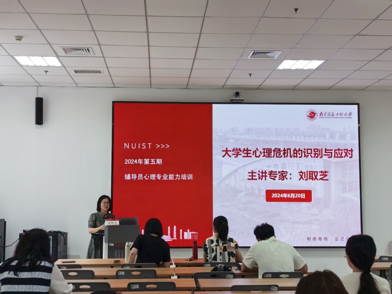 6月20日上午,学工处在临江楼A101-102会议室举办了2024年第五期辅导员心理专业能力培训。本次培训主题为《大学生心理危机的识别与应对》,由河海大学刘取芝副教授进行讲授,各学院辅导员及心理中心老师参加了此次培训。