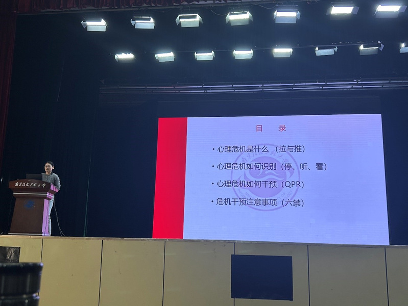 2024年11月3日,我校学工处学生心理健康教育中心举办的2024年新生班级心理委员培训于大学生活动中心小剧场圆满落下帷幕。本次培训分为四场,内容包含大学生心理委员的职责、异常心理现象的识别、心理危机的识别与应对以及心理团体辅导的简单介绍。四场讲座分别由我校心理中心主任钱春霞副教授、秦玄老师、史琼老师及姚欣源老师主讲,心理中心教师及2024级全体新任班级心理委员参加了培训。