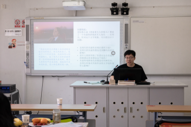 刘燕以《“雨”中见真章——<昆明的雨>文学解读向教学解读的转化》为题,分享了以文学研究服务教学实践的教学设计思路,详细介绍了“课眼-课脉”教学法的新颖性和价值性。贺艳珠从语言规范等角度进行点评。
