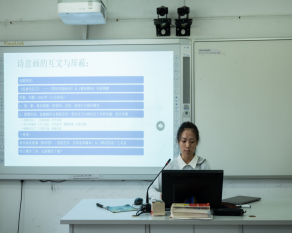 吕晨的题目是《欧阳修幽忧之疾视域下的文学书写与自我重塑》;蒋恬恬从研究视角切入进行学术点评。杨佳雯以《论我国春雪的自然、社会和文化意义》为题,探讨了春雪的气候意义、农业意义、文学意义和文化意义。重点从意象交融添“雪意”、多方感知显“雪姿”、应物斯感生“雪情”三方面阐述了春雪意象的文学功能。张敏从选题价值等方面进行学术点评。