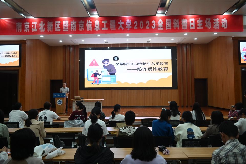 为进一步提高2023级新同学防范电诈的安全意识,增强反诈防骗能力,持续营造人人识诈、全民反诈的浓厚氛围。 9月21日晚,文学院联合盘城派出所在西苑滨江报告厅举办文学院2023级新生防诈反诈专题入学教育。本次讲座由吴鹏飞副书记主持,特邀盘城派出所常欣妍、孙跃两位警官主讲,文学院新生辅导员李渊和全体2023级本科生、研究生新生参会。