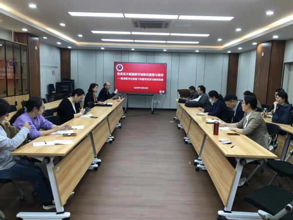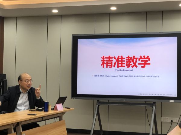 2023年10月26日下午4点,为加强本年度已获批AB类平台课的建设与管理,特邀请南京师范大学教育信息技术名家张一春教授于文N402进行了以“信息技术赋能教学创新的愿景与路径——教育数字化转型下的教学改革与教师发展”为主题的讲座研讨。会议由赵霞院长主持,初清华副院长及20多位平台课负责教师参与研讨。