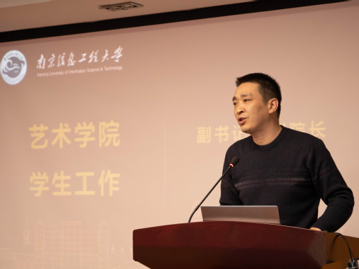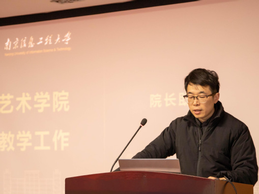 院长助理王岩岩围绕教学工作规划进行汇报。他指出教育教学数字化管理的迫切性,提出了“课程结构与科技深度融合”、“教育教学与实践紧密结合”的课程培养方案。同时,他强调教师应注重提升自身的科研与教学能力,组建艺术创新与科技应用能力双强的队伍。