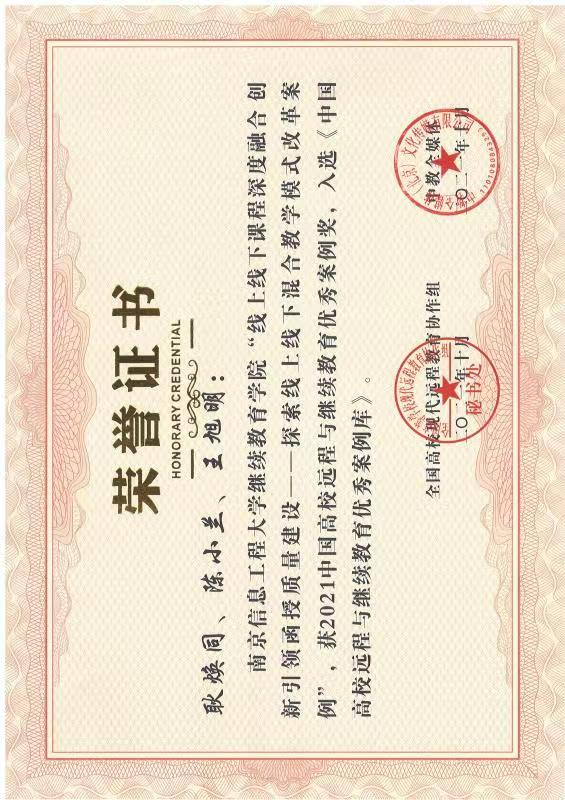耿焕同院长领衔的《线上线下课程深度融合 创新引领函授质量建设——探索线上线下混合教学模式改革案例》,获2021中国高校远程与继续教育优秀案例奖,入选《中国高校远程与继续教育优秀案例库》。