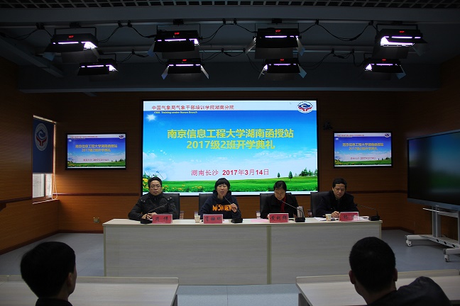南京信息工程大学湖南函授站2017级大气科学专升本两个班先后于2月21日和3月14日开班。中国气象局气象干部培训学院湖南分院(以下简称为湖南分院)常务副院长肖秧琳、副院长黄利群、周伟、林浩等分别出席开学典礼。
