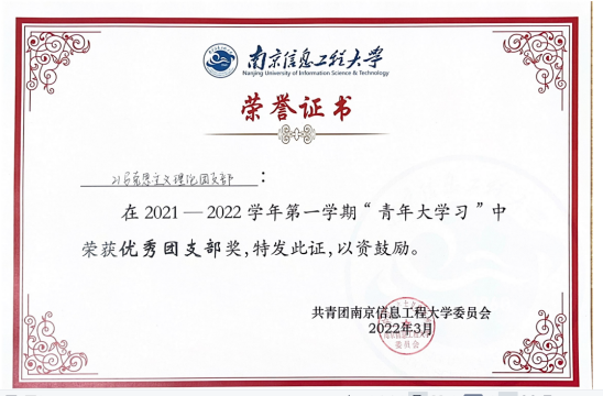 以“青年大学习”网上主题团课作为共青团工作的切入点和突破口,抓紧抓实“青年大学习”网上主题团课学习教育,经过前期申报、学院审核,2021级马克思主义理论团支部荣获2021-2022学年第一学期“青年大学习”优秀集体荣誉称号。在学院党总支的督促落实和悉心关照下,“青年大学习”2022年第六期以来,学院学习率稳居前列,连续五期全校排名第一。