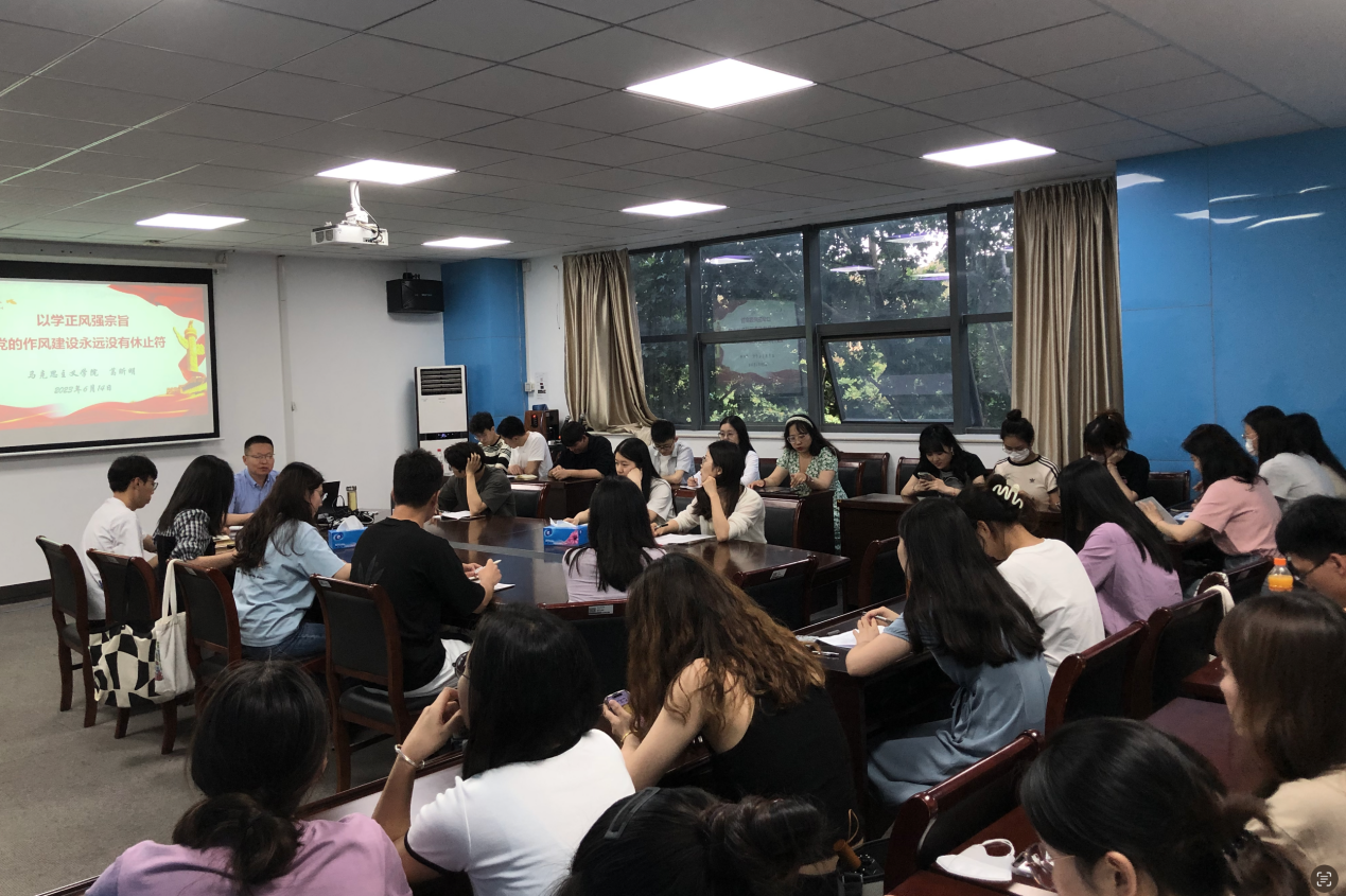 根据学院主题教育工作安排,6月14日,学院党委书记葛昕明以《以学正风强宗旨 党的作风建设永远没有休止符》为题讲授主题教育专题党课,学院各党支部书记、研究生党支部全体党员以及全院入党积极分子参加党课学习。