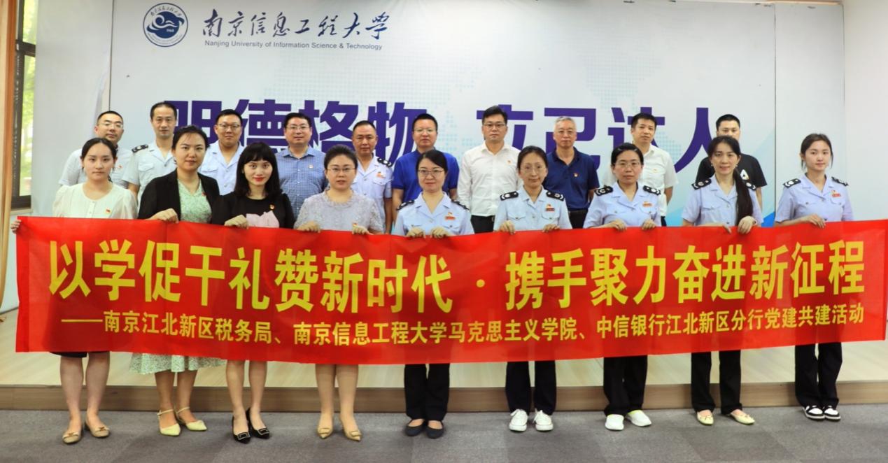7月27日,马克思主义学院与南京江北新区税务局、中信银行江北新区分行三方党建共建交流座谈会在我校召开,南京江北新区税务局党委委员、副局长王笑,中信银行江北新区分行党委书记、行长周鸣等一行二十余人出席交流活动。学院党委书记葛昕明、李志江教授以及学生党员代表参加活动。