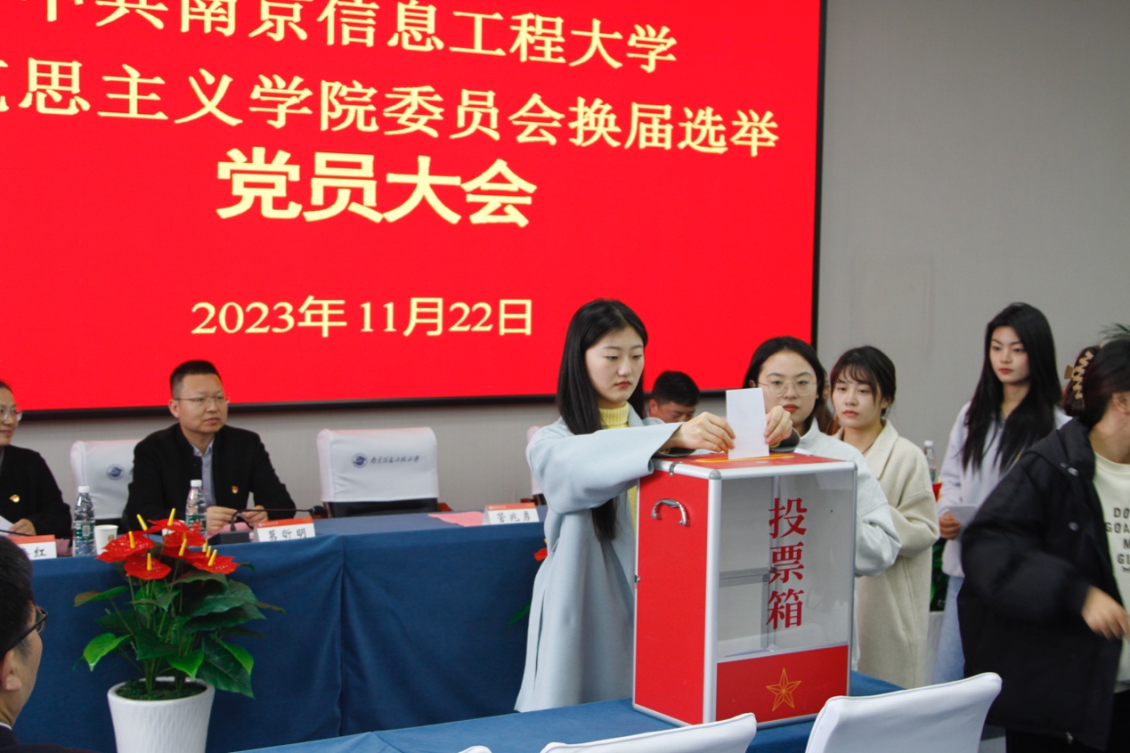 大会审议并通过了党委工作报告、选举办法和总监票人、监票人、总计票人、计票人名单。与会正式党员以无记名投票方式,差额选举产生新一届中共南京信息工程大学马克思主义学院委员会委员。