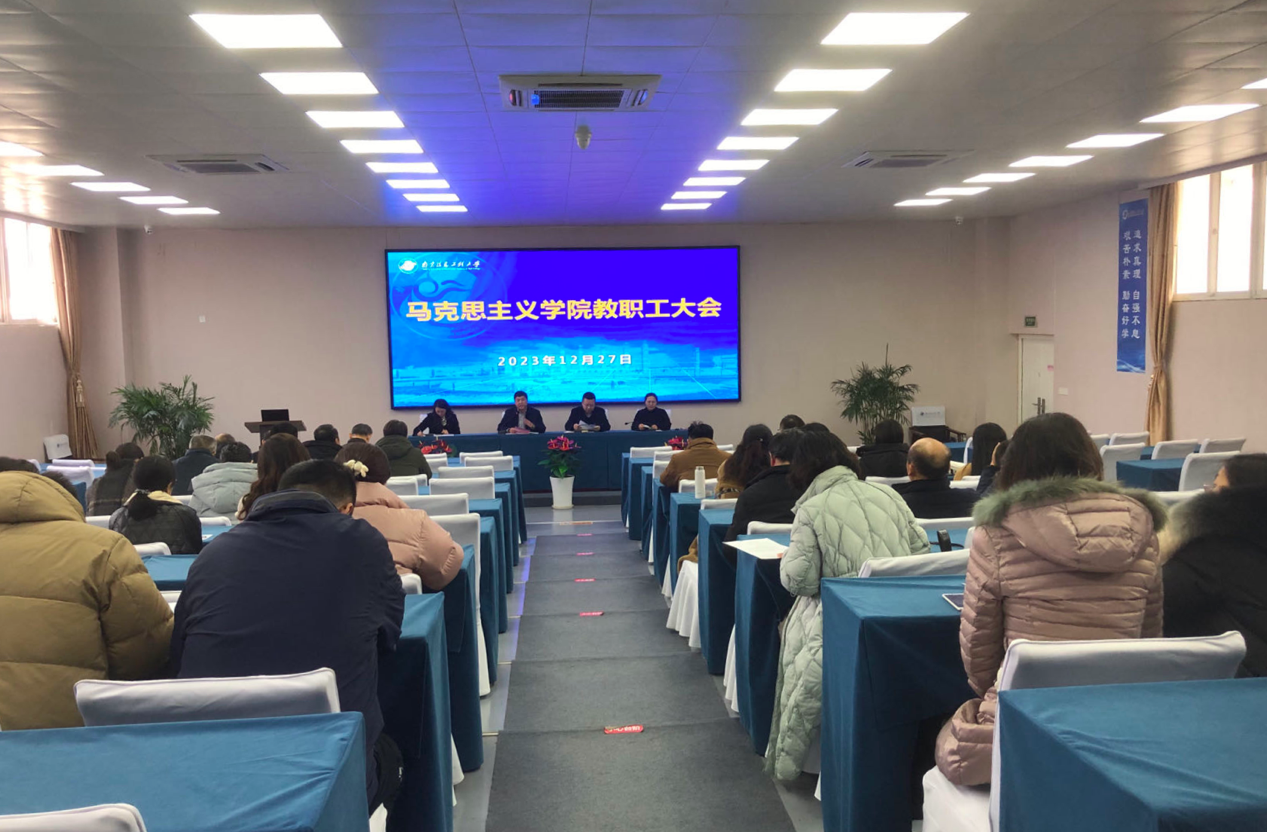 12月27日,马克思主义学院在文德楼N301召开2023年终教职工大会,全体教职工参加会议,会议由学院党委书记葛昕明主持。