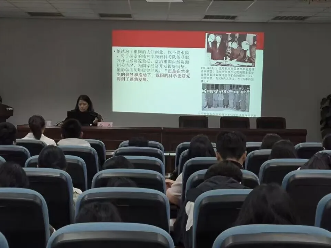 孙燕馆长着重讲述了竺可桢先生的生平,从他少年立志学好科学,到回国任教醉心教育事业,再到创建主持气象研究所、夺回中国气象主权……充分体现他的浓厚的家国情怀。竺可桢先生提出并毕生践行的“求是”精神是气象科学的真实写照,激励着一代又一代科学工作者自强不息、踔厉奋发、献身科学、奉献社会。
