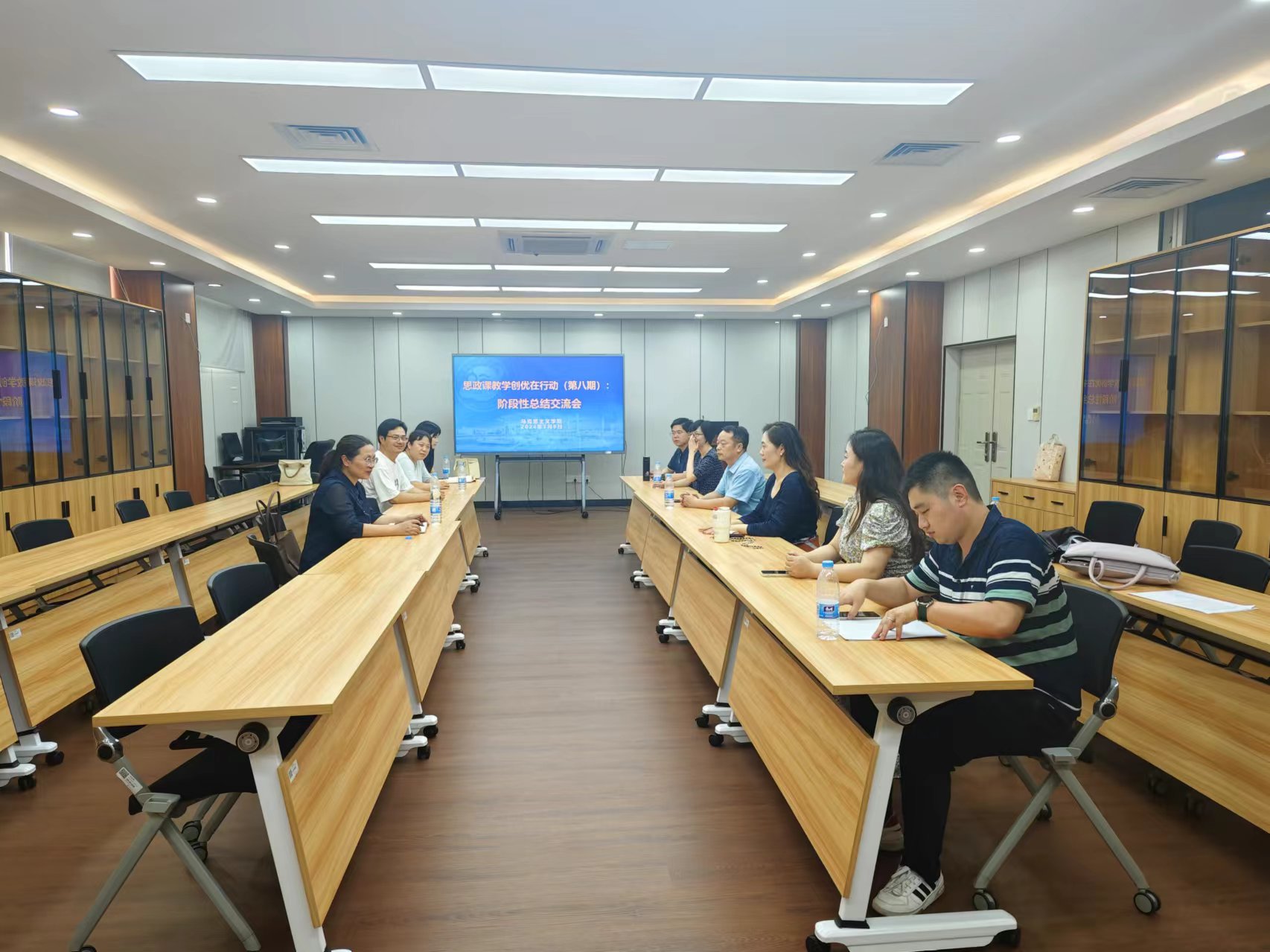 为促进“思政课教学创优在行动”系列活动取得实效,7月10日下午3:30,马克思主义学院在文德楼N402召开阶段性总结交流会,各教研室骨干教师代表参加,本次活动由副院长徐海红主持。