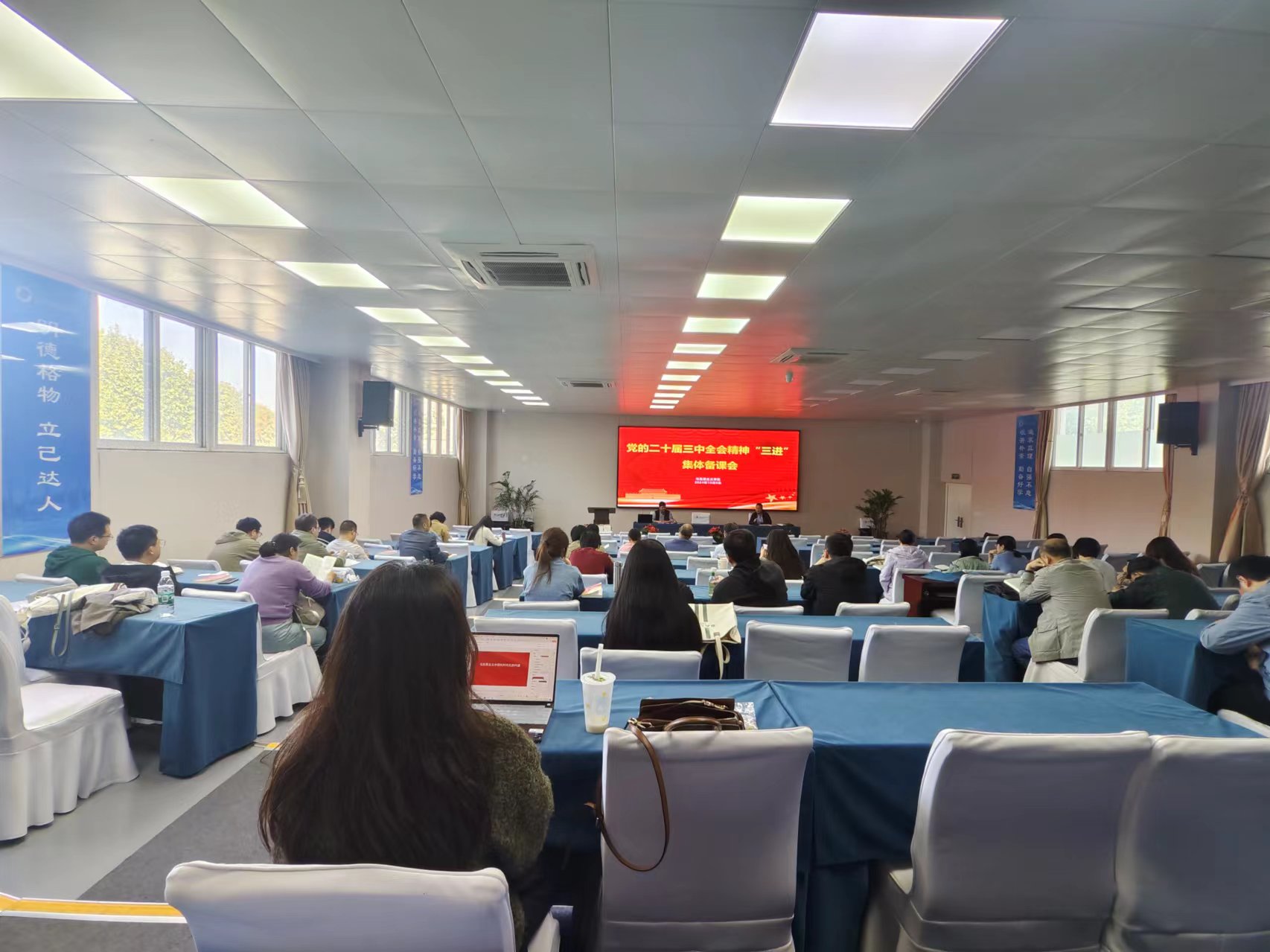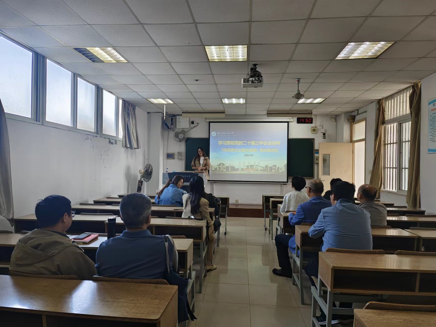马克思主义基本原理教研室老师在文德楼S501参加“学习贯彻党的二十届三中全会精神 《马克思主义基本原理》集体备课会”,教研室主任周丽老师主持。