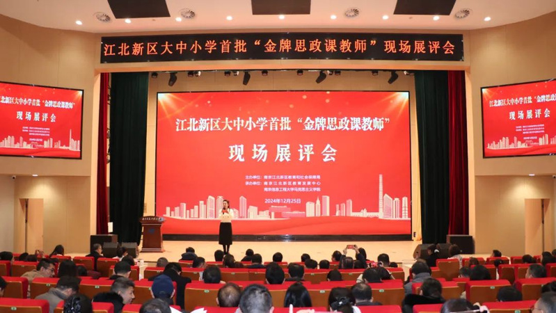 12月25日下午,南京江北新区大中小学首批“金牌思政课教师”现场展评会在南京信息工程大学召开,江苏省教育科学研究院教师研究所副所长曹鸿骅,江北新区教育和社会保障党工委副书记、纪工委书记周桂松,南京工业大学马克思主义学院院长眭国荣,南京信息工程大学马克思主义学院党委书记葛昕明,江北新区宣传和统战部副部长严静,江北新区教育和社会保障局党群工作办主任陈佳,局属各级党组织书记、新区大中小学思政课教师代表等参加活动。