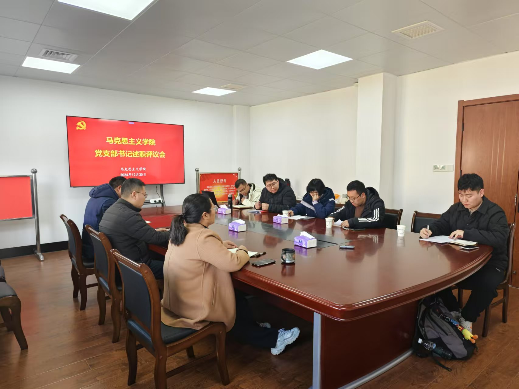 12月30日,马克思主义学院在理政楼306会议室召开2024年度党支部书记述职评议会,学院党委委员、各党支部书记参加会议,会议由院党委书记葛昕明主持。