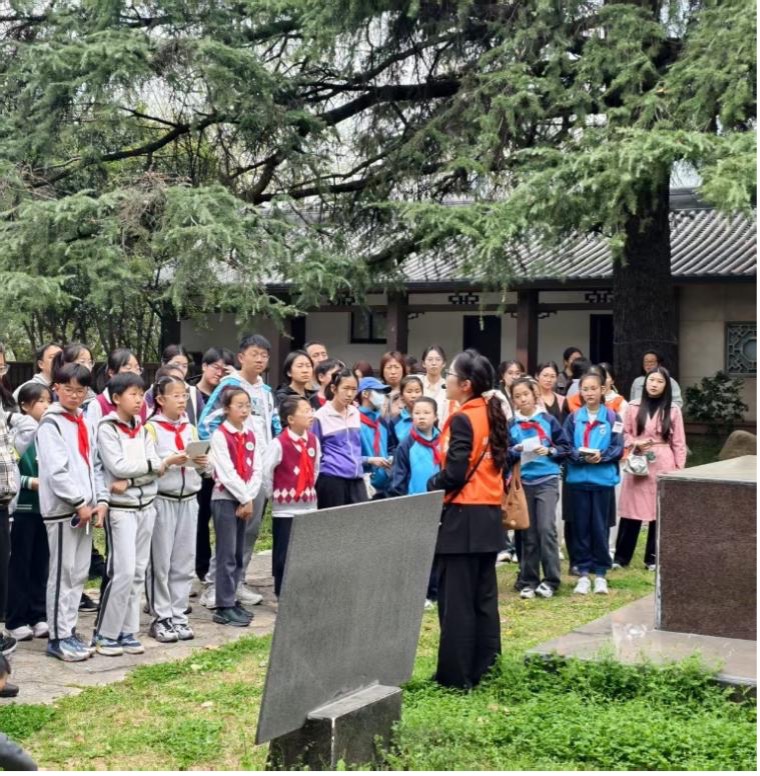南京信息工程大学马克思主义学院研究生张鑫鑫在竺可桢的雕像前,为在场的大中小学生分享了竺可桢的故事,生动地展现了竺可桢无私奉献、矢志报国的崇高精神和坚持不懈的优秀品质,进一步弘扬了科学家精神,为学生成长成才树立了榜样。