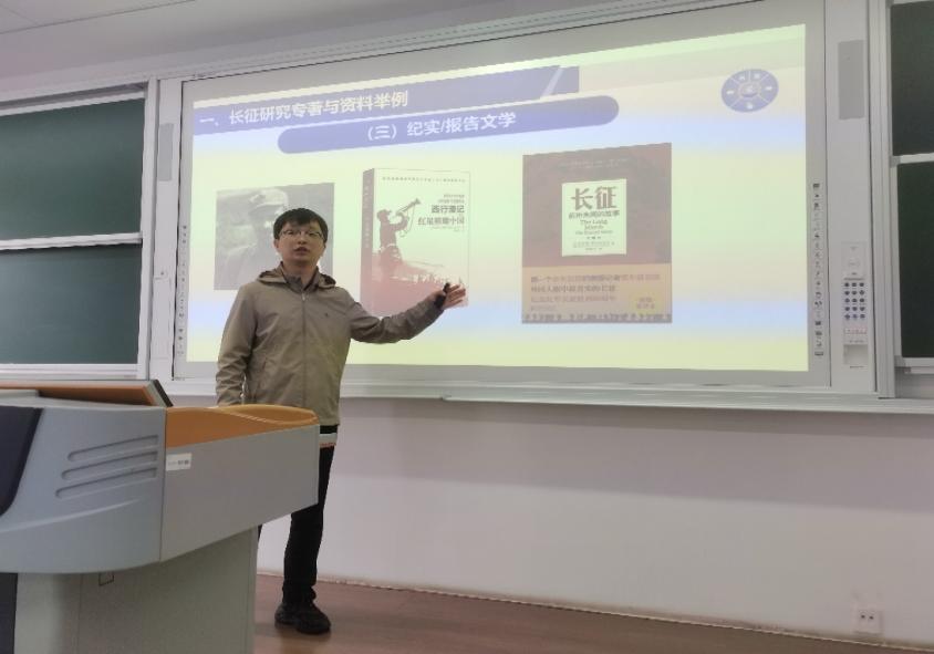 接着,刘永广老师做了一个题为《历史专著与资料在纲要课程教学中的应用——以长征为例》的精彩报告。他提出要逼近长征历史的真相,可从党的早期领导人回忆录、女红军回忆录、国民党军官回忆录、纪实报告、文学等多角度进行,并认为讲好长征故事应入情入理入心,可从作为事件的长征、作为经历的长征、作为传奇的长征三个方面内容阐述。