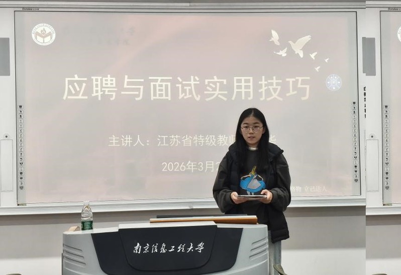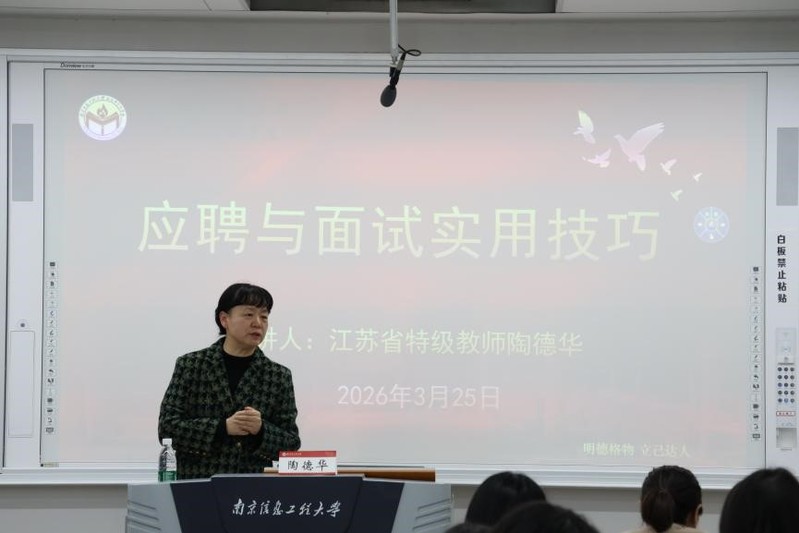 为助力学子就业和高效备考教师资格证,提升面试应试能力与综合素养,3月25日下午,马克思主义学院在明德楼S303举办《应聘与面试实用技巧》专题讲座。本次讲座特邀南京市中华中学心理健康教育中心主任、江苏省特级教师陶德华主讲,学院副院长徐海红、25级本科生班主任赵紫燕出席,学院全体本科生参加本次活动。讲座由学办副主任黄欣慧主持。