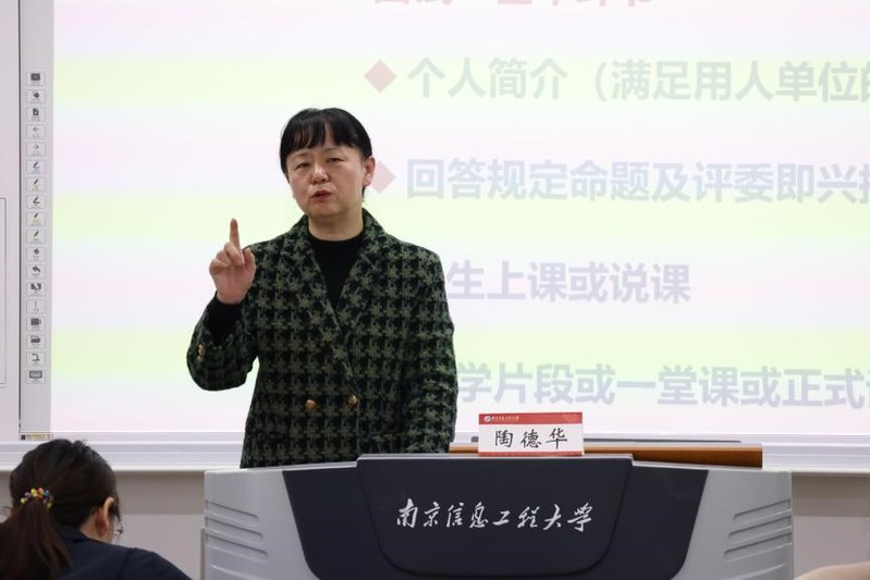 讲座尾声,陶德华现场观看本科生教学展示,并作出精彩点评与专业指导。她再次强调,备课思路梳理、教学细节打磨、知识框架搭建,全在于平日积累与苦练。她勉励同学们勇于登台展示、勤于动脑思考、善于复盘反思,稳步提升教学能力。
