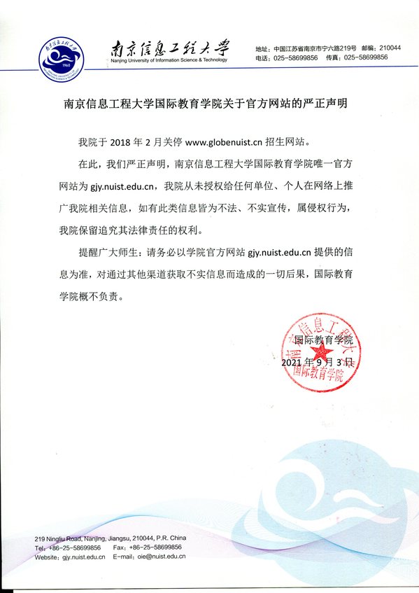国际教育学院关于官方网站的严正声明
