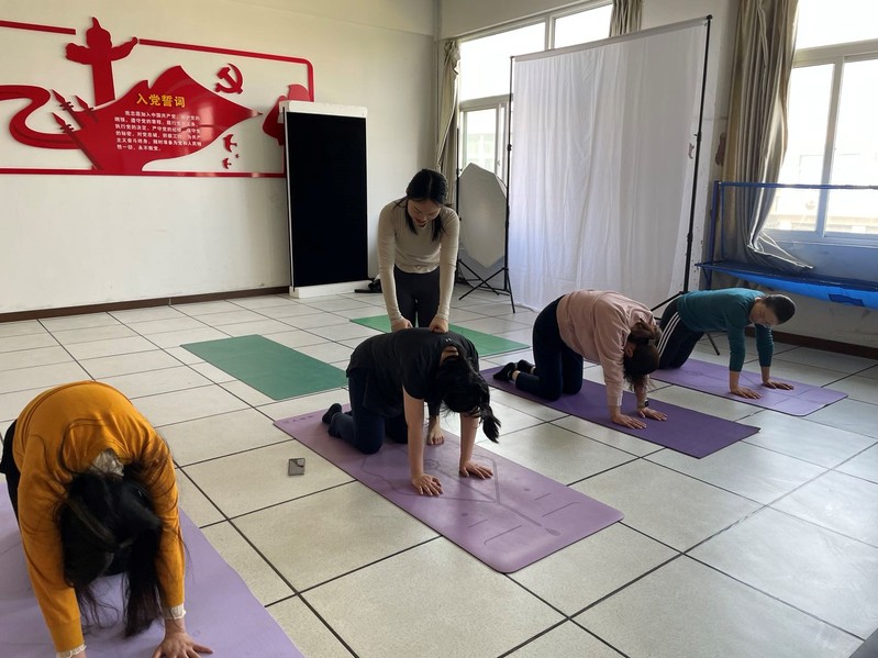 在轻柔的音乐声中,在专业瑜伽老师的精心指导下,女职工们全身心地投入到瑜伽中,配合着均匀的呼吸,让身体得到了充分地舒展。瑜伽让她们更加的自信美丽,在轻柔的音乐中体验瑜伽的独特魅力,在运动中修养身心。