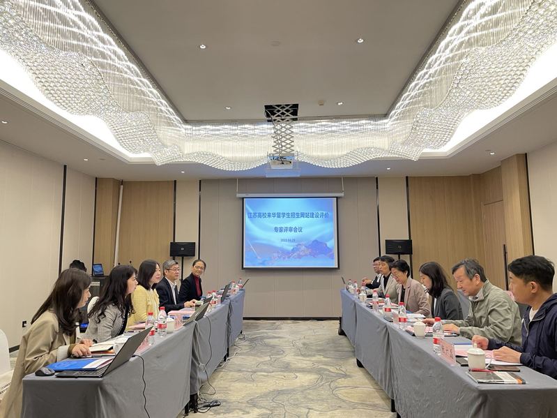 4月29日,江苏高校来华留学生招生网站建设评价专家评审会议在我校召开。省政府外事办公室、新华日报、麦秋传媒的5位专家受邀参加本次评审。副校长江志红,省教育厅对外合作与交流处副处长施蕴玉,省留管会副理事长兼秘书长张海军,省留管会副理事长俞晓南出席。会议由俞晓南主持。