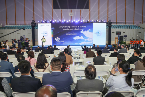 4月14日,第50期多国别考察暨世界气象组织南京区域培训中心成立30周年活动在我校举行。世界气象组织(WMO)秘书长佩蒂瑞·塔拉斯、WMO助理秘书长张文建、19个国家气象水文部门负责人,中国气象局副局长张祖强,江苏省教育厅副厅长杨树兵,南京江北新区管理委员会副主任林其坤,江苏省气象局局长于波,以及我校校领导周乃贵、胡明保、韦忠平、金自康、陈海山、马嫣出席。活动由副校长马嫣主持。
