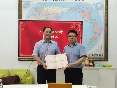 7月6日下午,国际教育学院举行“中华文化导师”聘任仪式。受聘专家、受聘专家单位领导以及学院学办代表参加仪式。聘任仪式由学院党总支主持工作副书记李岩主持。
