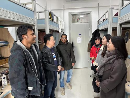 在学生宿舍,学院领导与留学生们进行了亲切的交谈,详细询问了他们寒假期间的生活、学习情况。留学生们对学院领导的关心表示了衷心感谢。同时,他们也对学院在寒假期间安排的内容丰富、形式多样的文、体、学习和娱乐活动表示赞许和感激。