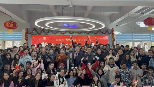 玉兔辞旧岁,金龙迎春来。2月8日,中苑老食堂二楼欢歌笑语、其乐融融,由国教院承办的我校2024年“龙腾四海,乐在信大”春节联欢活动在这里举行。校党委副书记、副校长陈海山和宣传部、统战部、国际交流与合作处、研工部、学工部、国教院、总务处(后勤服务总公司)以及雷丁学院的领导一道与留校师生共聚一堂,庆祝即将到来的农历新年。