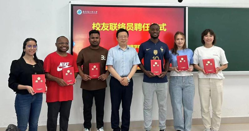 李岩首先向参会的留学生毕业生代表表示祝贺。他高度肯定了大家在南信大学习期间所取得的成绩,并对他们为学校、学院所做出的贡献表示赞赏和感谢。同时,他也希望受聘成为留学生校友联络员的同学们能情系母校,持续关注并支持母校的发展,不仅要讲好“信大故事”,更要讲好“中国故事”;不仅能积极主动地发挥好校友与学校之间的桥梁作用,也要努力成为国家间友谊和交流的使者。