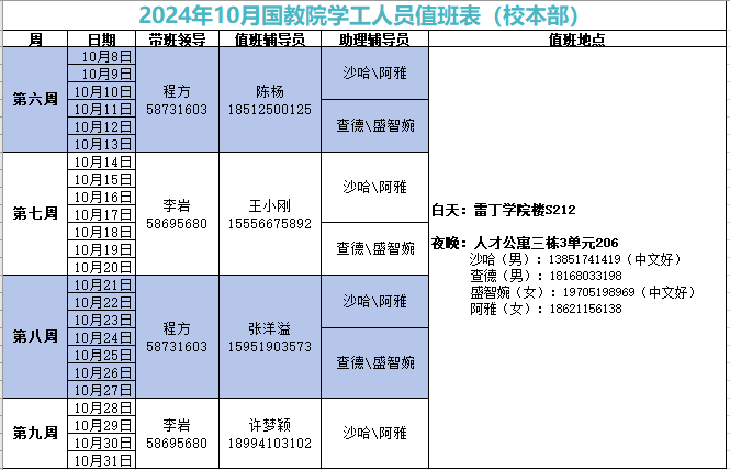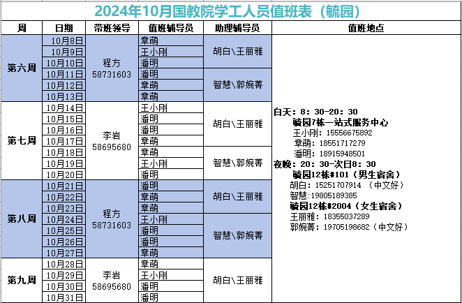 2024年10月学工人员值班安排