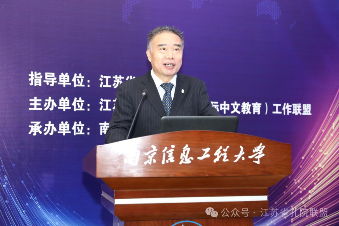 南信大国际教育学院院长程方就2023年江苏省孔子学院(国际中文教育)联盟工作作了报告。报告围绕本年度江苏省孔子学院联盟主要工作及成果、取得的重要影响及来年工作计划等进行了汇报。本次大会推出了《江苏国际中文教育荟萃》、《2023年江苏省孔子学院(国际中文教育)工作联盟》两部刊物,为江苏孔院开展建设经验交流、教学创新研究和科研项目协作搭建了平台,也是江苏孔院工作的重要进展。