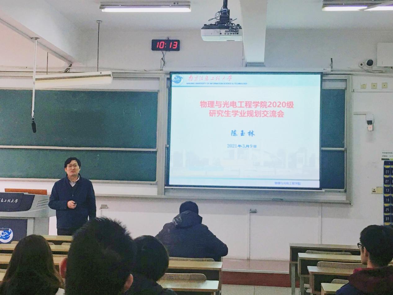会上,陈院长就研究生阶段尽早开展学业规划的重要性和成功经验进行分享。他重点从认识自我、条件分析、目标定位、评估调整、人生价值等五个方面进行详细解读。阐述我院光学工程学硕与电子信息专硕的定位和培养目标,强调研一同学要重视目前基础课程的学习,鼓励同学们提前做好科研及实习规划,在扎实专业知识的同时培养良好的专业能力和动手能力,为将来发展打下坚实的基础。他表示,在研究生阶段的学习中,更要关注时政,积极参与中国特色社会主义思想理论体系的学习,不断提高认识,加深对社会,对国家前沿科学领域、发展路线的理解,爱国爱党,向为国家发展作出杰出贡献的科学家、医务工作者、军人学习,握好前辈手中的接力棒,用青年力量书写中国故事。交流会的内容十分精彩,现场不时爆发出学生的掌声。
