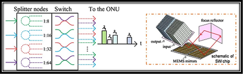 采用远端供能以及波长分配开关阵列设计了光信号时域、频域的无源动态调度模块,实现了时/频资源的分配,解决了光信号传输中分配节点无源化与动态化共存的问题