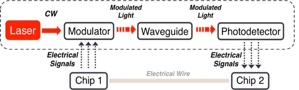 通过高精度微纳加工将光学和电学结构同时制作在绝缘体上硅基底上,利用载流子掺杂对波导调制结构进行有源处理,改变、优化其光电性质,并通过外加电极对波导中的光载波强度、相位等参数进行调制,实现高速光电信号转换,以期获得通道多、速率快、功耗低、集成度高、传输容量大等优点的片上光互连系统。