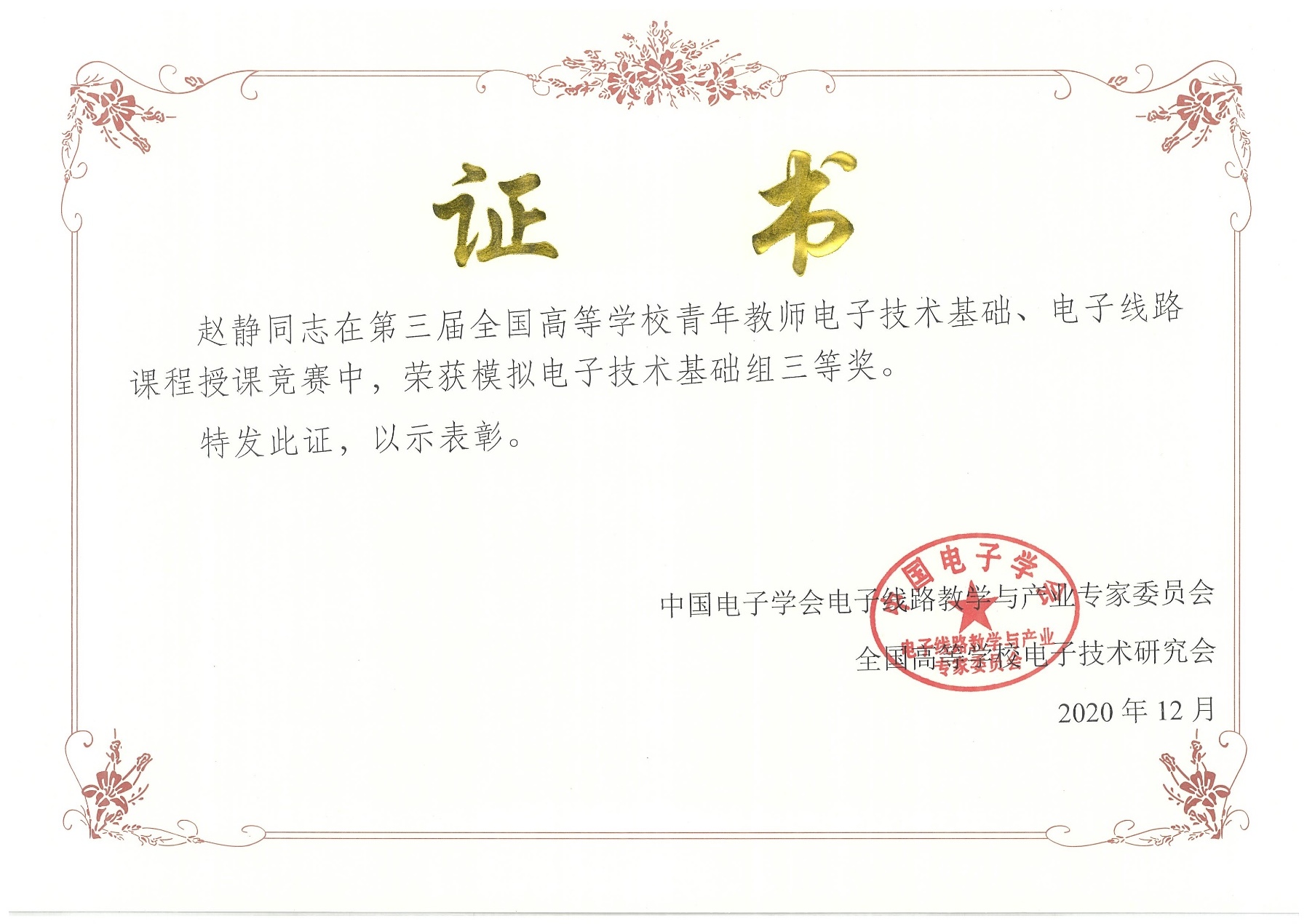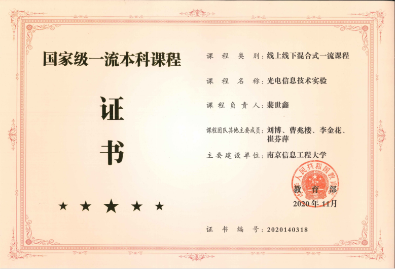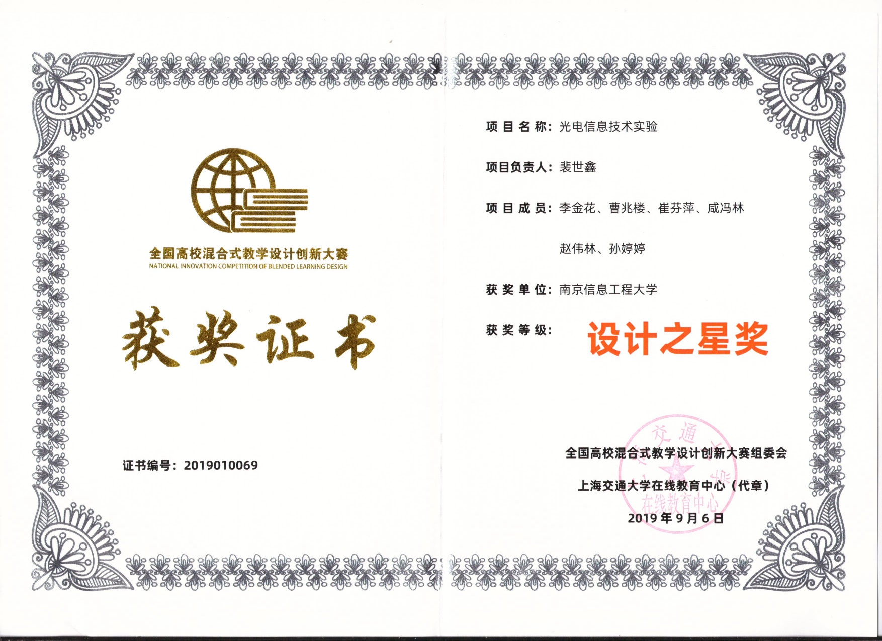 光电工程系党支部2021年6月获江苏省高校特色党支部,三次被评为校“先进基层党组织”,支部党日活动两次获评校“最佳党日活动”;支部党员老师赵静、咸冯林、钱黎明等被评为院“优秀共产党员”、校“工会工作积极分子”等荣誉称号;支部多名教师被评为校“优秀班主任”,叶井飞同志还荣获校“十佳班主任”荣誉称号;教师党员郑改革获江苏省第二届青年光学科技奖,江苏省教育科学研究成果三等奖;党员裴世鑫老师为首批国家级“一流本科课程”负责人和江苏省首批一流本科课程负责人,教学突出贡献奖获得者,先后在江苏省微课教学竞赛、江苏省微课程教学竞赛、江苏省基础物理讲课竞赛和江苏省移动教学大赛中获得一等奖;教师党员赵静老师获第七届电工电子基础课程实验教学案例设计竞赛华东赛区三等奖、第三届全国高等学校青年教师电子技术基础-电子线路课程讲课竞赛东部赛区一等奖、全国三等奖、南京信息工程大学实验教学案例设计竞赛一等奖等教学奖项。
